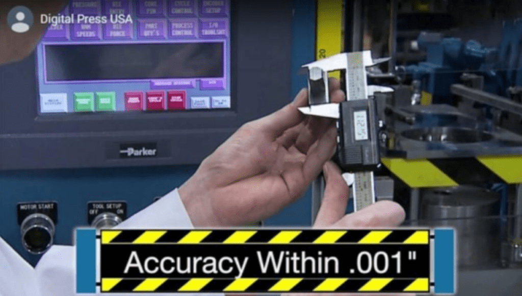 Most accurate. The Digital Press can press parts to within .001″ and can hold close densities by accurately controlling compacting pressures from 1/10 ton to 1 ton, depending on the size of the press.